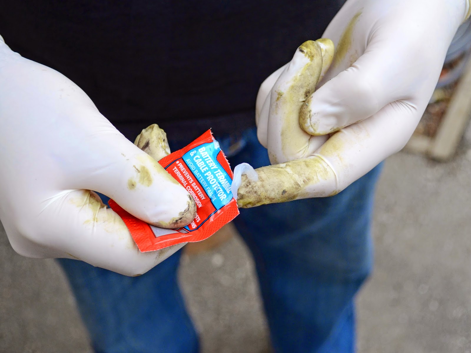 Buy a packet of battery terminal protector and, using your finger, coat the (now assembled) battery terminal in a thin layer. Be sure to cover the outside of both the lead and post, but not to allow any protector between the post and lead.Credit: ifixit