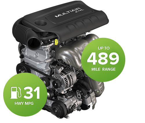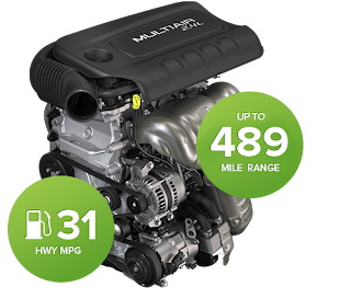 with the 2.4L MultiAir II Tigershark I4 engine, achieves up to 489 hwy miles on